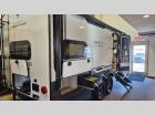 Are you looking for a lightweight trailer with at-home comforts? Take a look at this single slide out unit that can sleep three to four each night. There is a queen-size bed in the back with a 26" x 80" flip-up bunk for cozy sleeping space, a 72" sofa with cupholders to relax on, plus a 12V TV for movie nights! The front kitchen includes a 12V refrigerator to store food, plus a microwave oven and a gas oven to cook meals each day.