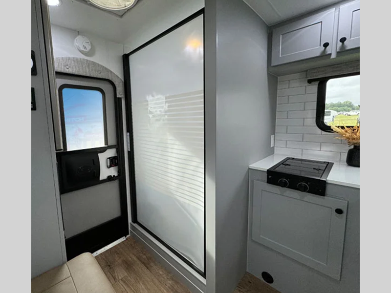 Sleeps 3 Length 14 ft 10 in Ext Width 7 ft 7 in Ext Height 8 ft Int Height 6 ft 8 in Dry Weight 2300 lbs Fresh Water Capacity 28 gals Grey Water Capacity 13 gals Black Water Capacity 5 gals Available Beds Queen Refrigerator Type 12V Convection Cooking Yes Cooktop Burners 2 Shower Size 40" x 40" Floor Length 7 ft 7 in LP Tank Capacity 20 lbs. Water Heater Type Truma Combi Truck Bed Size Long Number of LP Tanks 1 Body Style Hard-Side Shower Type Wet/Bath Shower