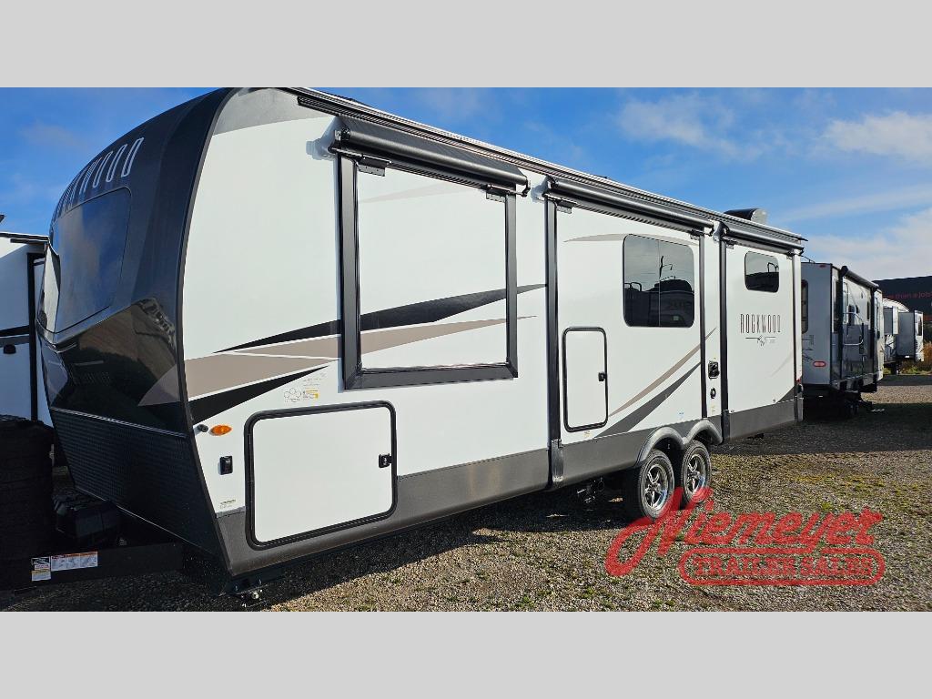 Each Rockwood Ultra Lite travel trailer by Forest River includes superior construction with a high gloss front cap, laminated white fiberglass sidewalls, and tinted frameless windows for a sleek look. The torsion axle, Rubber-Ryde suspension will make towing smooth and hassle-free, along with the nitrogen filled, Goodyear Endurance tires and the tire pressure monitor system. Interior comforts include designer kitchen backsplash, solid wood cabinet doors with hidden hinges, and night roller shades to name a few. Choose a Rockwood Ultra Lite travel trailer today!