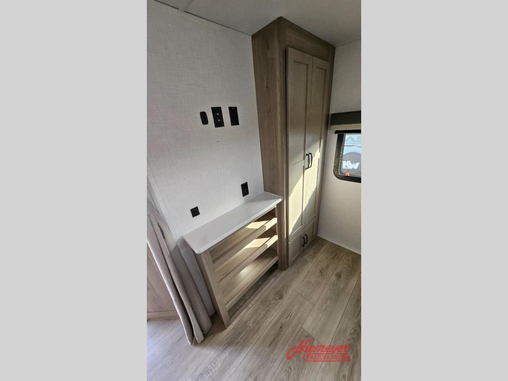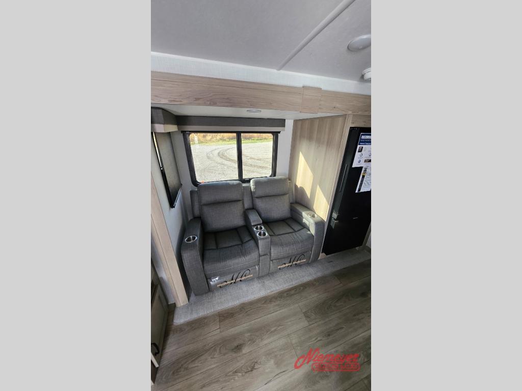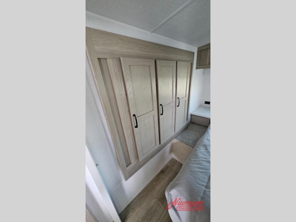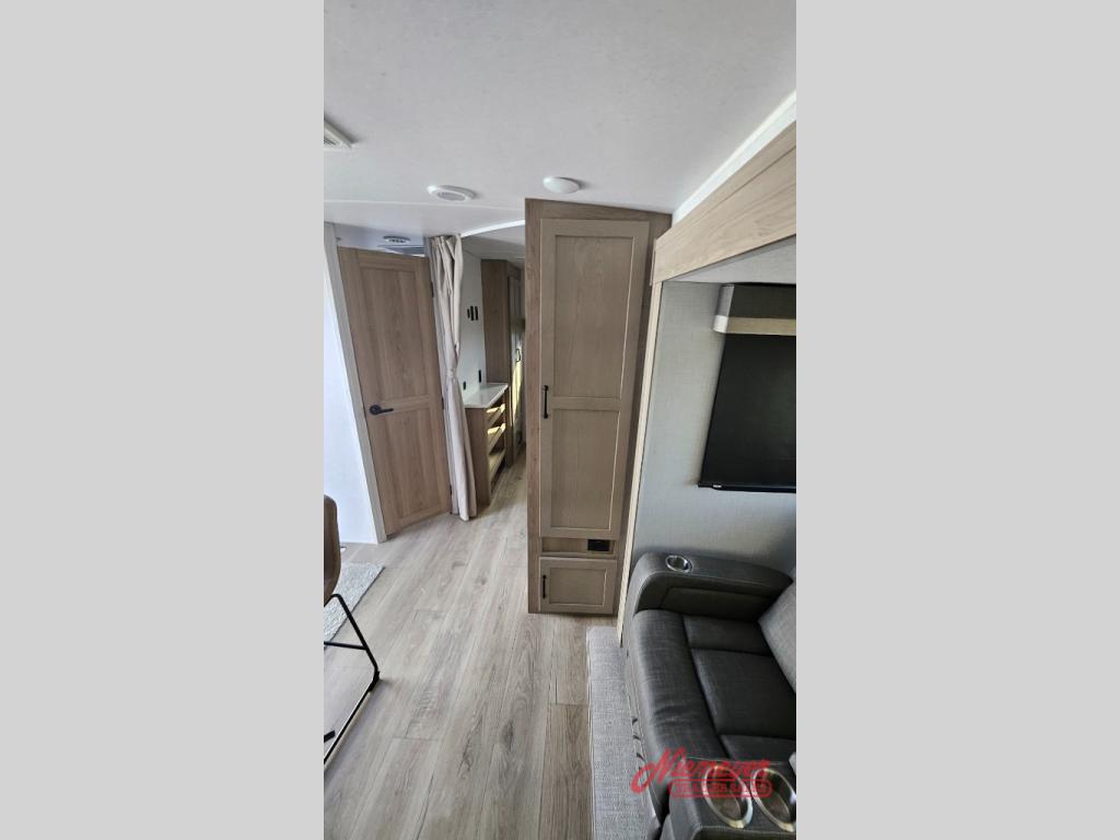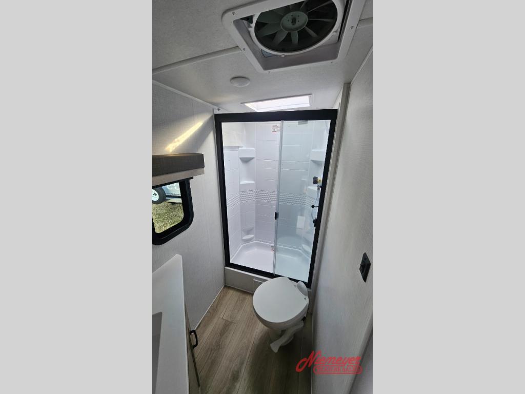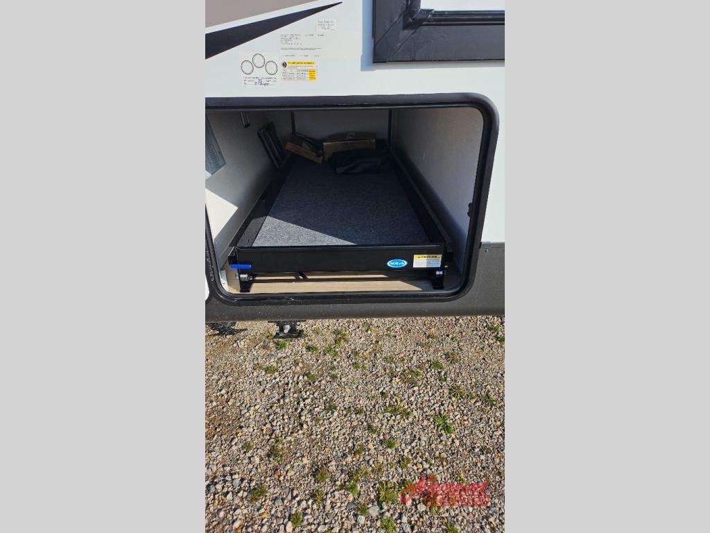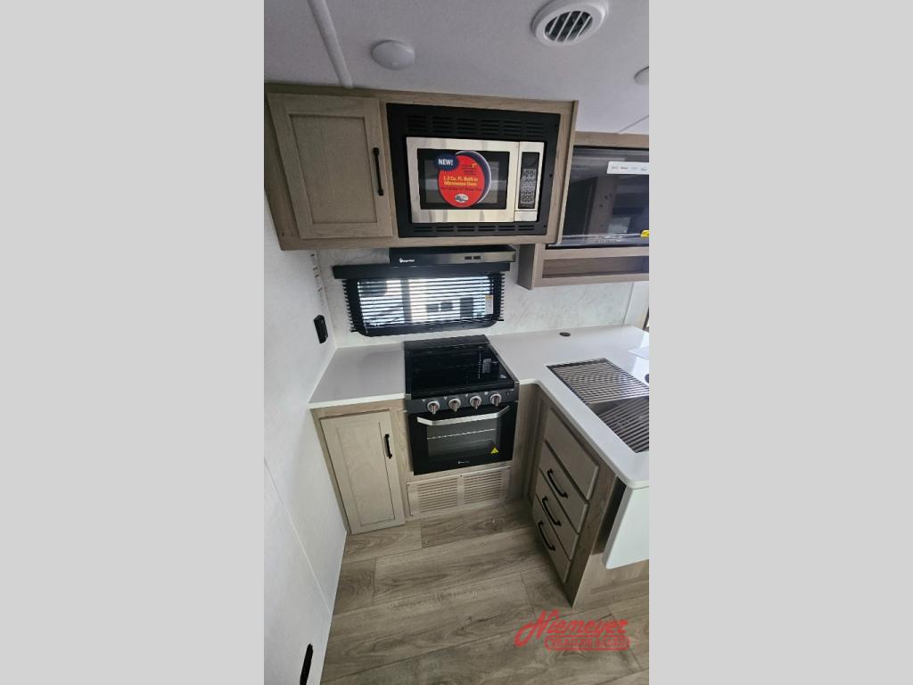 This is the perfect travel trailer to camp with friends and family since it has a private bunkhouse in the back with a flip-up bunk and a 68" sofa. The full bath is close by, as well as the main entry door for convenience. You'll find the second entry door leading into the front private bedroom that includes a queen-size bed, a wardrobe slide out, and an optional TV if you enjoy movies in bed. The U-shaped kitchen includes everything you need to prepare meals each day, and there is even an exterior griddle if you like to cook outside. In the evening, your crew can get comfortable on the theater seat or choose the optional hide-a-bed sofa if you're needing more sleeping space!