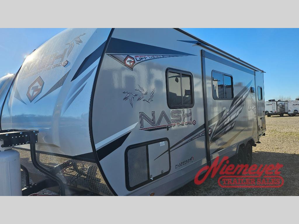 With any Nash travel trailer by Northwood, you can be sure you're getting a durable RV made to last thanks to the fully welded, thick-wall aluminum frame construction and Northwood built Ironhorse chassis. There are also thermal pane windows, Corona treated fiberglass, and all-conditions/four seasons insulation so you can camp year around! A pass through storage with an LED light will let you easily store camp gear and the SolX 4 - 400 Watt Solar Package will provide some off-grid capabilities. If you're wanting to go even more off-grid, just choose the optional Off The Grid Package! Head inside to enjoy the cathedral arched ceiling, along with slow rise night shades, a Northwood TruRest mattress, an AM/FM stereo with Bluetooth, and many more at-home comforts.