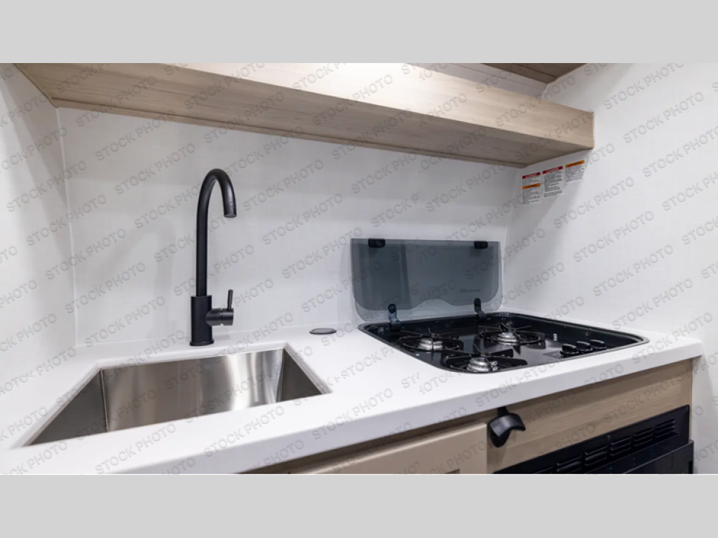 It won't be hard to find comfort in this travel trailer. It may be smaller on size, but it doesn't skim on features. The twin beds convert to a king-size bed for your comfort, and there is even a 12V TV to enjoy in the evenings. The kitchen includes a three burner cooktop, a convection microwave, plus a 12V refrigerator for perishables. You'll find overhead compartments for your valuables and exterior storage for your hiking gear!
