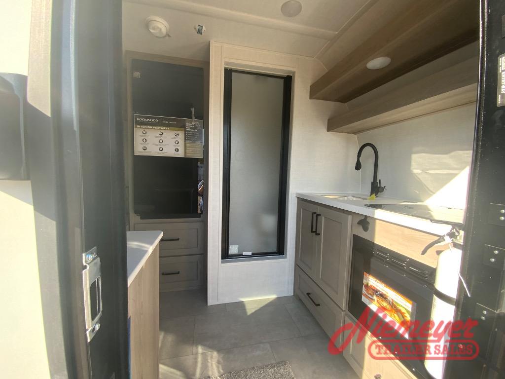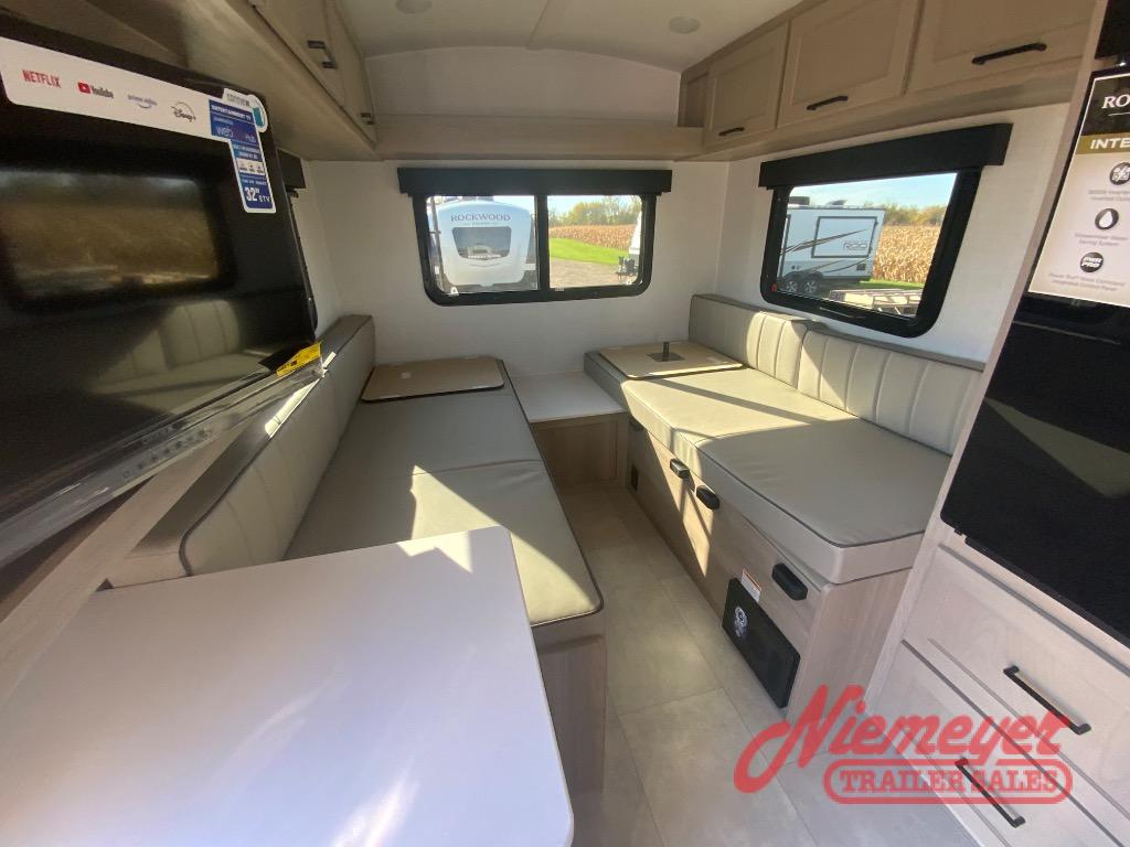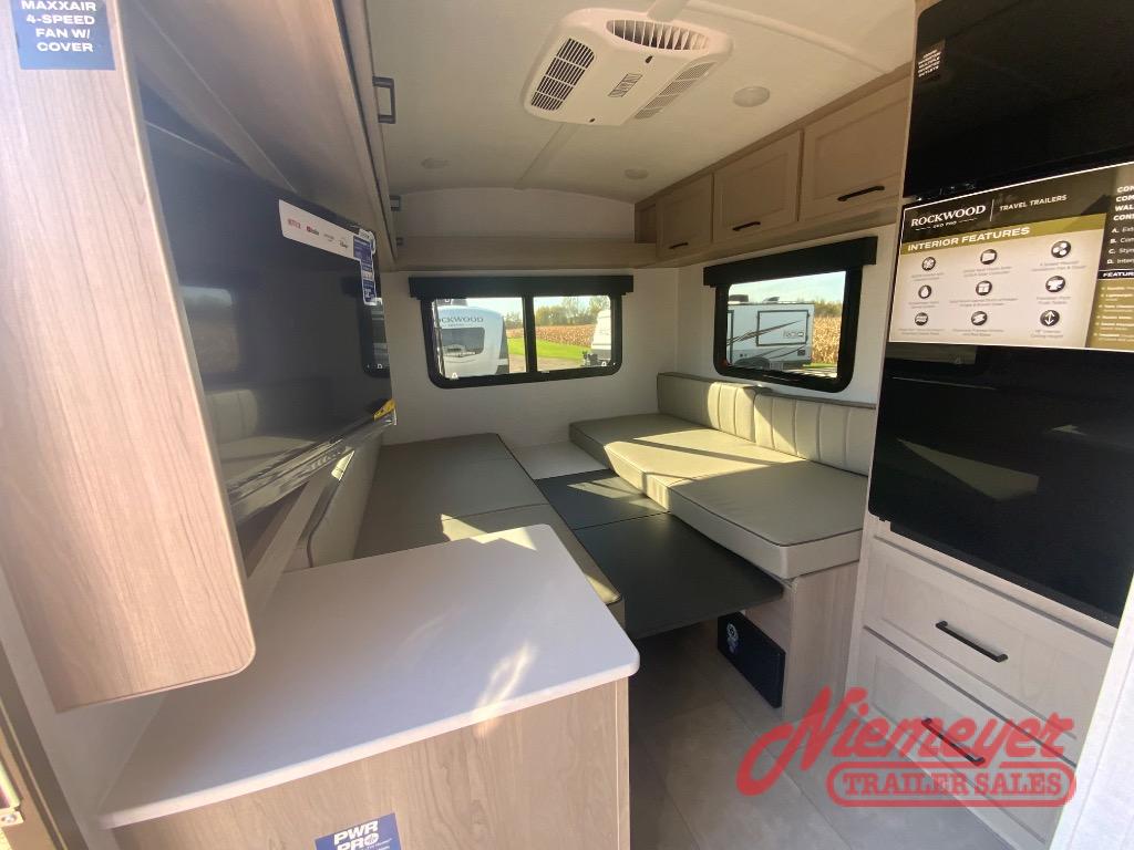 With any Rockwood GEO Pro travel trailer by Forest River you will enjoy easy towing, durable construction, and off-road capabilities with larger laminated roof! Each model is constructed with complete composite wall construction for added strength and durability, and Dexter® axles that will make towing easier than ever. Inside, you'll find sleek back up camera prep for added security, a refrigerator and a microwave, plus many other interior amenities that will make you feel at home on the road.