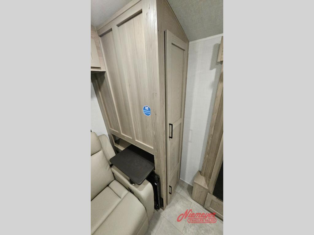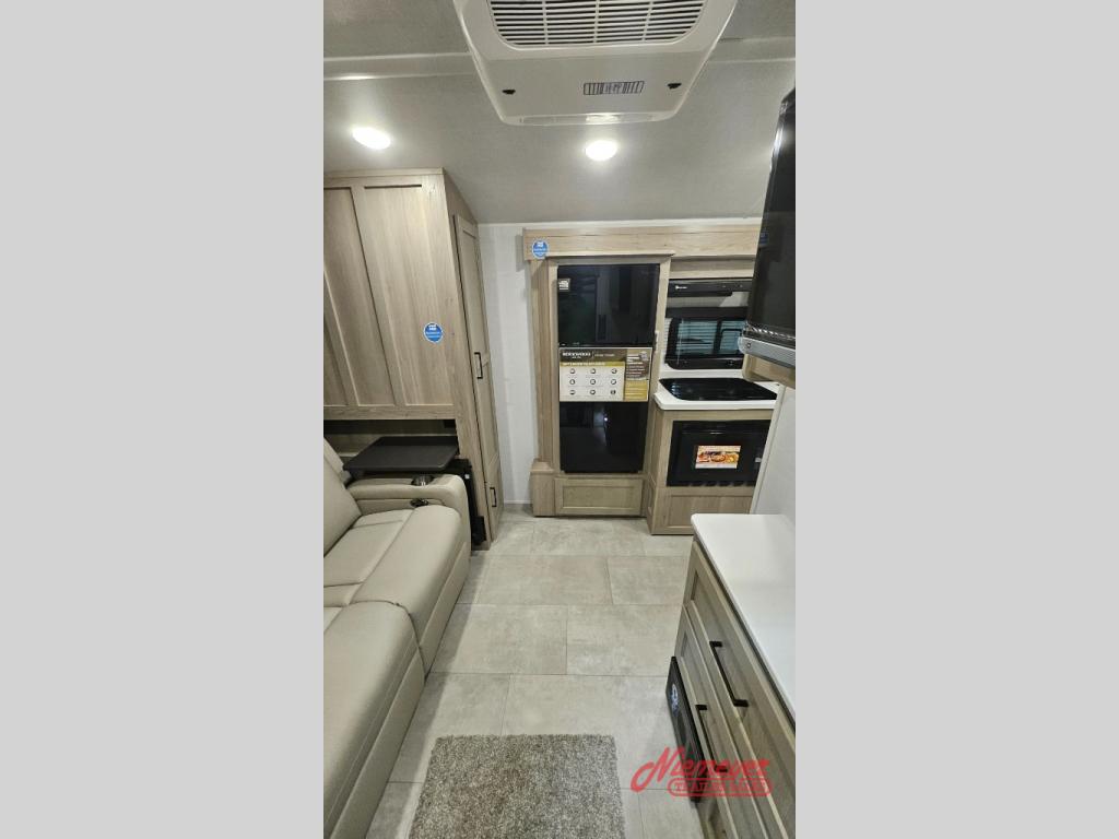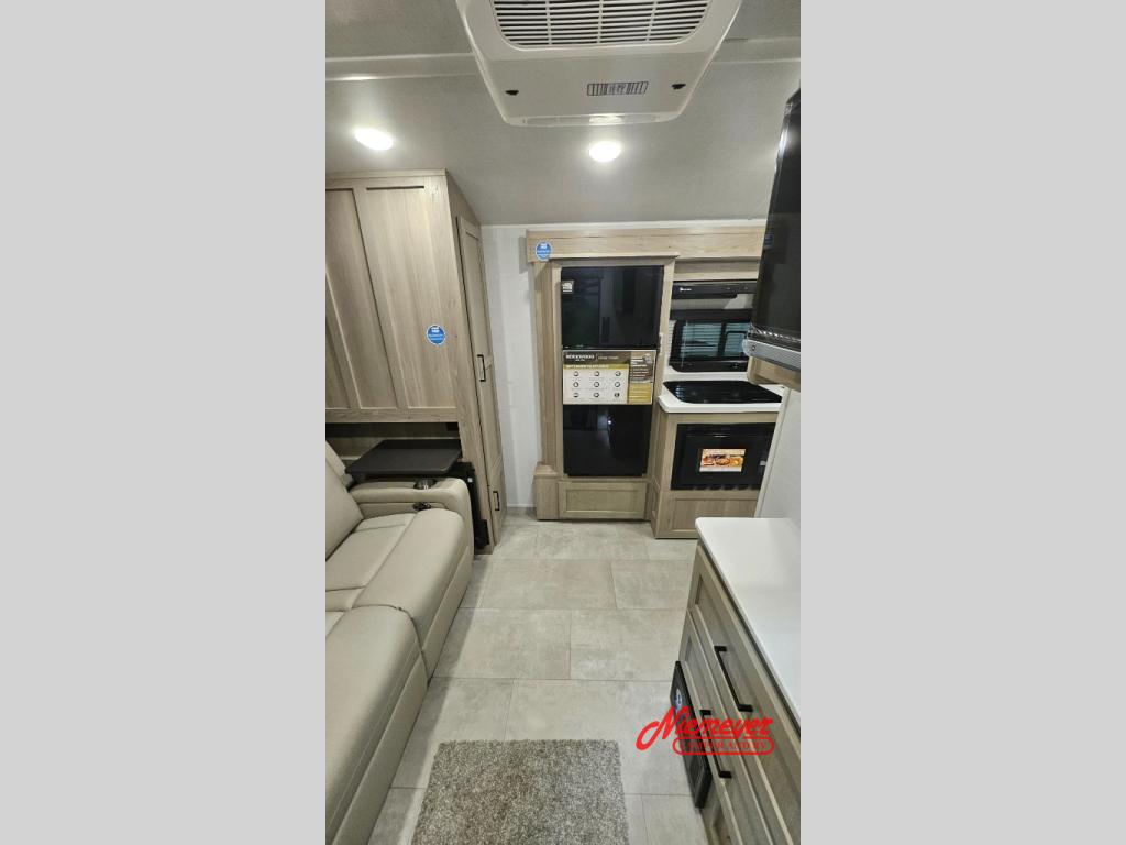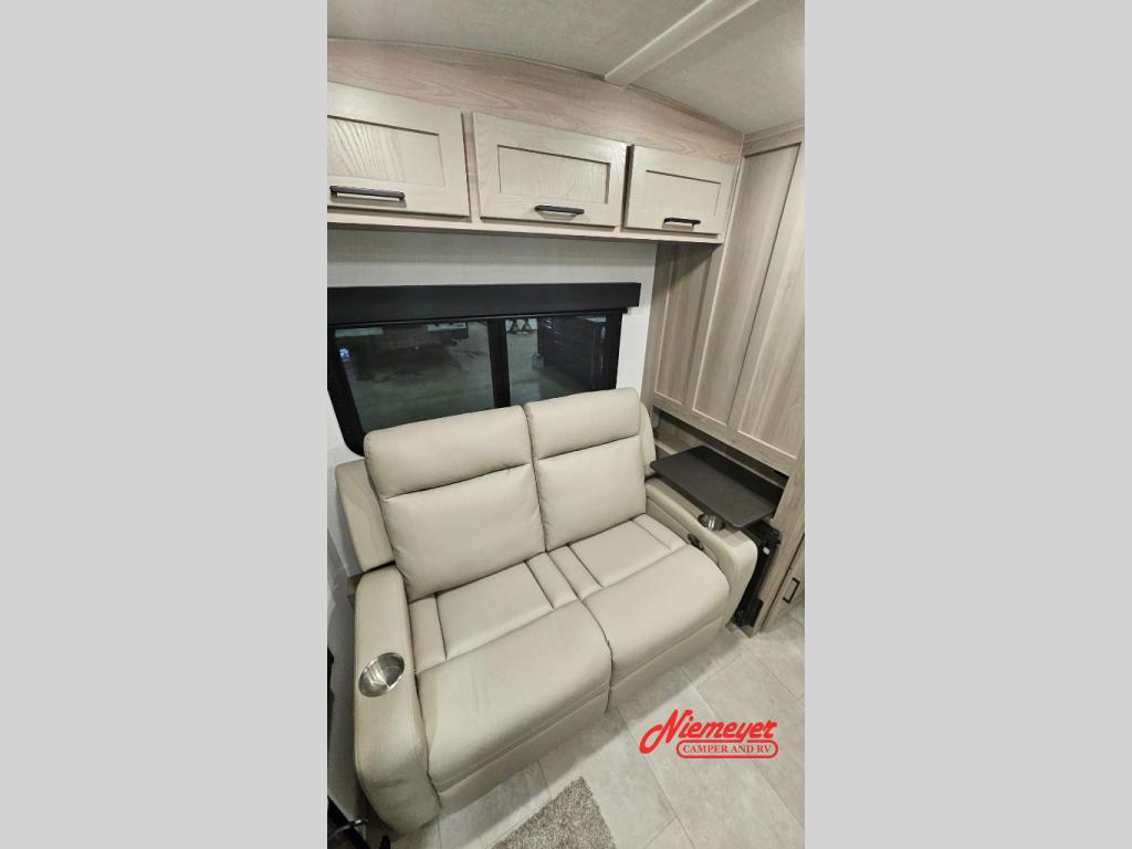 Start having unforgettable adventures with this amazing travel trailer! The queen-sized bed is the perfect spot to unwind and recharge after a day of exploring, offering a restful sleeping space that's sure to leave you feeling refreshed. The full bathroom has everything you need to refresh and rejuvenate in private. In the kitchen-living room combined area, you will find a three-burner cooktop for gourmet meals, a convection microwave for quick and easy cooking, and a spacious refrigerator to keep your ingredients fresh, plus overhead cabinets and a pantry/closet provide ample storage for cookware, dishes, and food. In addition, you can have endless evenings of amusement in the 55" theater seat, which is the perfect spot to relax and enjoy your favorite shows or movies on the TV. On the outside, the exterior awning provides a shaded spot to enjoy the outdoors, while the pass-through storage offers plenty of room for gear, luggage, and equipment.