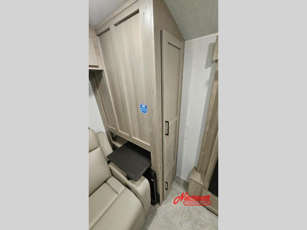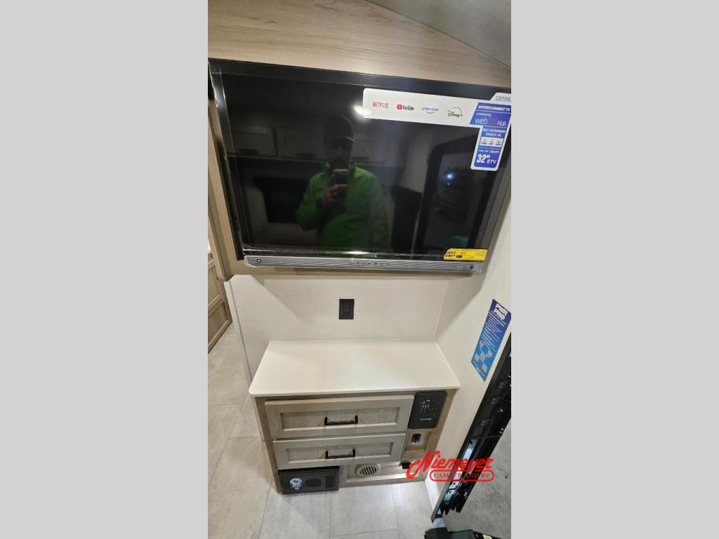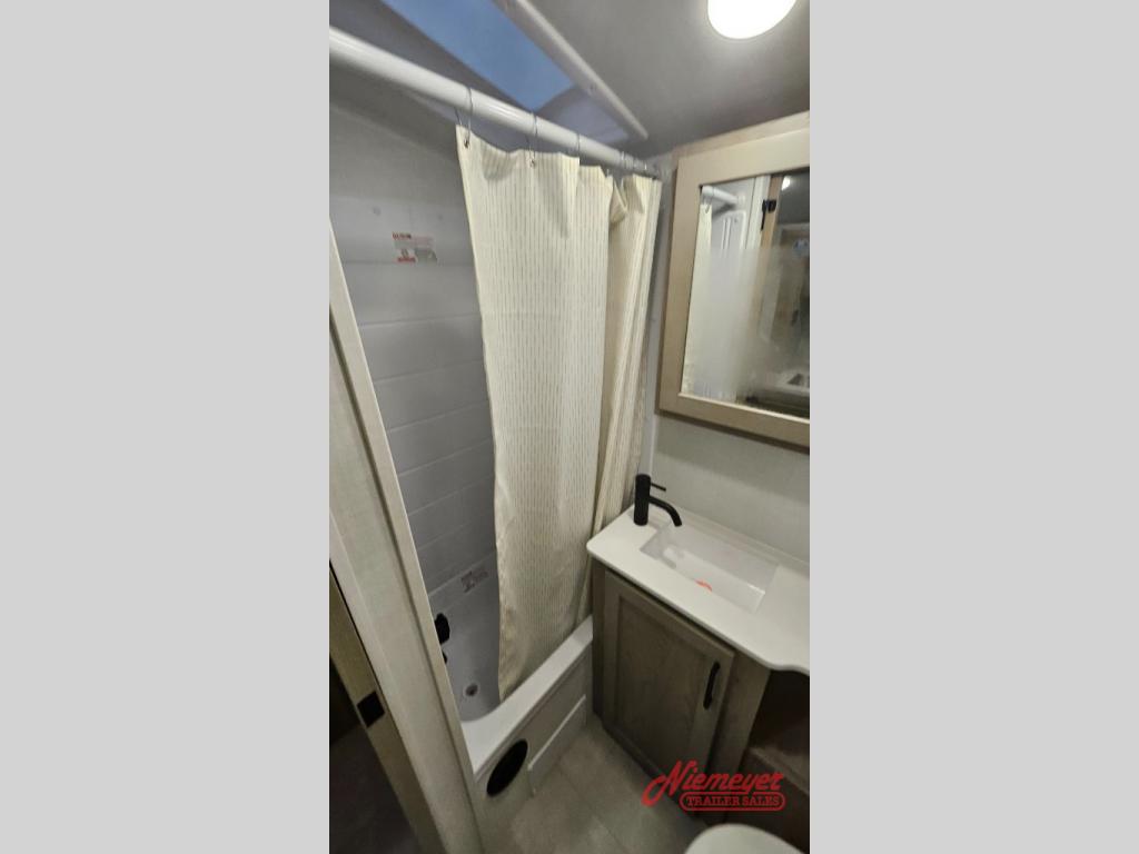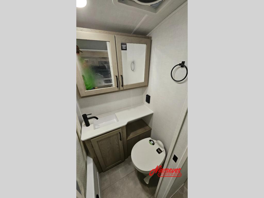 Start having unforgettable adventures with this amazing travel trailer! The queen-sized bed is the perfect spot to unwind and recharge after a day of exploring, offering a restful sleeping space that's sure to leave you feeling refreshed. The full bathroom has everything you need to refresh and rejuvenate in private. In the kitchen-living room combined area, you will find a three-burner cooktop for gourmet meals, a convection microwave for quick and easy cooking, and a spacious refrigerator to keep your ingredients fresh, plus overhead cabinets and a pantry/closet provide ample storage for cookware, dishes, and food. In addition, you can have endless evenings of amusement in the 55" theater seat, which is the perfect spot to relax and enjoy your favorite shows or movies on the TV. On the outside, the exterior awning provides a shaded spot to enjoy the outdoors, while the pass-through storage offers plenty of room for gear, luggage, and equipment.