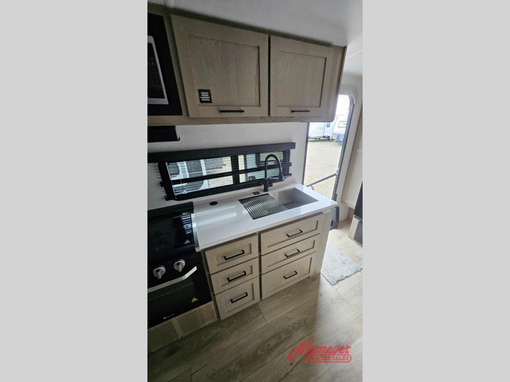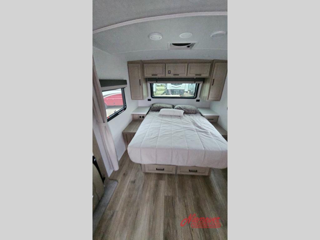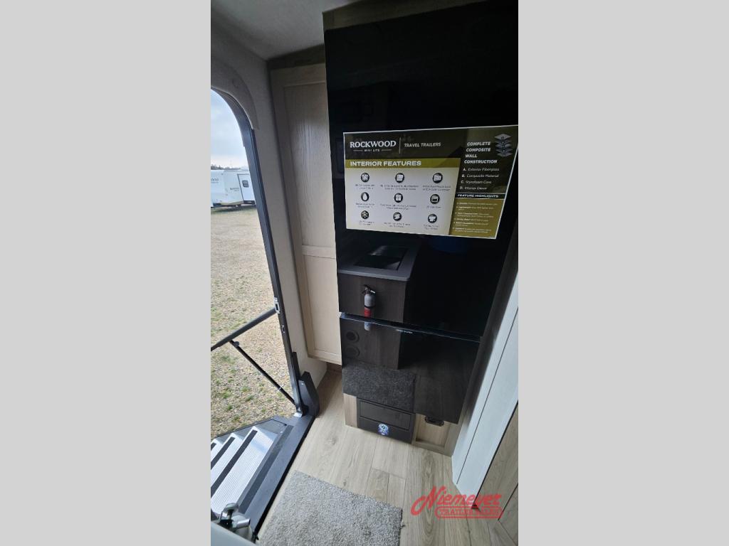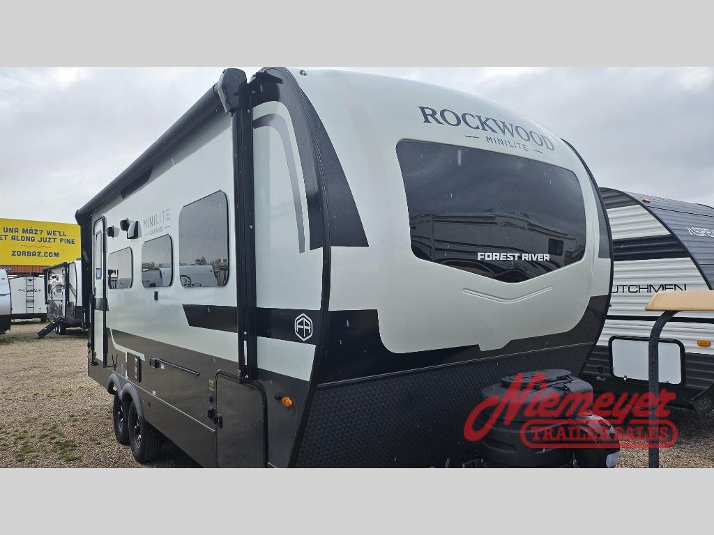 Each Rockwood Mini Lite travel trailer by Forest River is constructed with a fully laminated one-piece walkable roof, sleek frameless windows, and a six-sided full aluminum frame for strength and durability. The 12V thermostatically controlled heated tanks, plus radiant foil in the underbelly will allow you to camp well into the colder months, and the 200W roof solar panel will be perfect for a little off-gridding. Each model includes solid surface kitchen countertops, hidden hinge cabinet doors, roller shades, plus many more interior features. Having an AIR 360+ omnidirectional antenna with WiFi prep on board gives you the option to get some work done if it's needed, and the power tongue jack provides hassle-free set up, so you can enjoy more time relaxing!