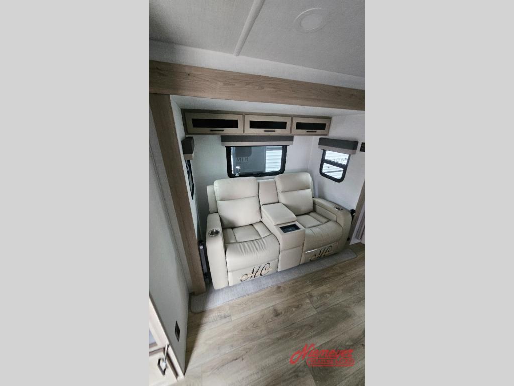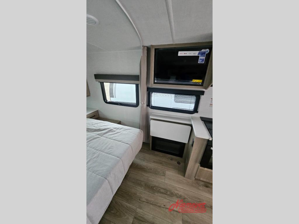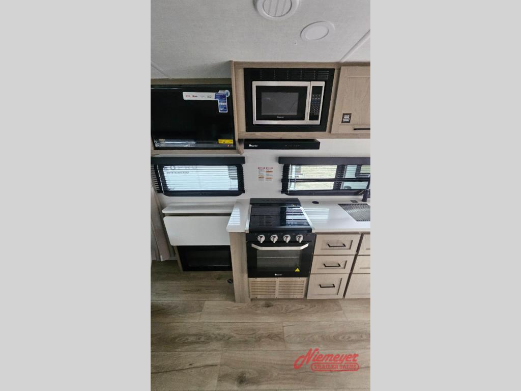 Enjoy the camping season with your spouse, friend, or significant other in this cozy travel trailer for two. Each morning, you can have your coffee on the 67" theater seats with a table within the slide out, then head outdoors to make pancakes on the outdoor griddle with an LP hookup. The interior kitchen includes a three burner cooktop, a microwave oven, plus a 12 volt refrigerator for perishables. An entertainment center with a fireplace will make your space feel more like home, and what's better than sleeping on your own queen bed with dual bedroom wardrobes for your clothes!?