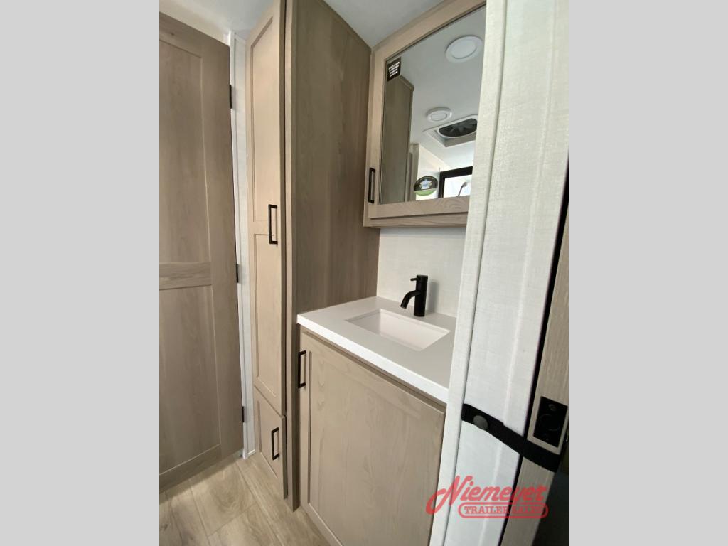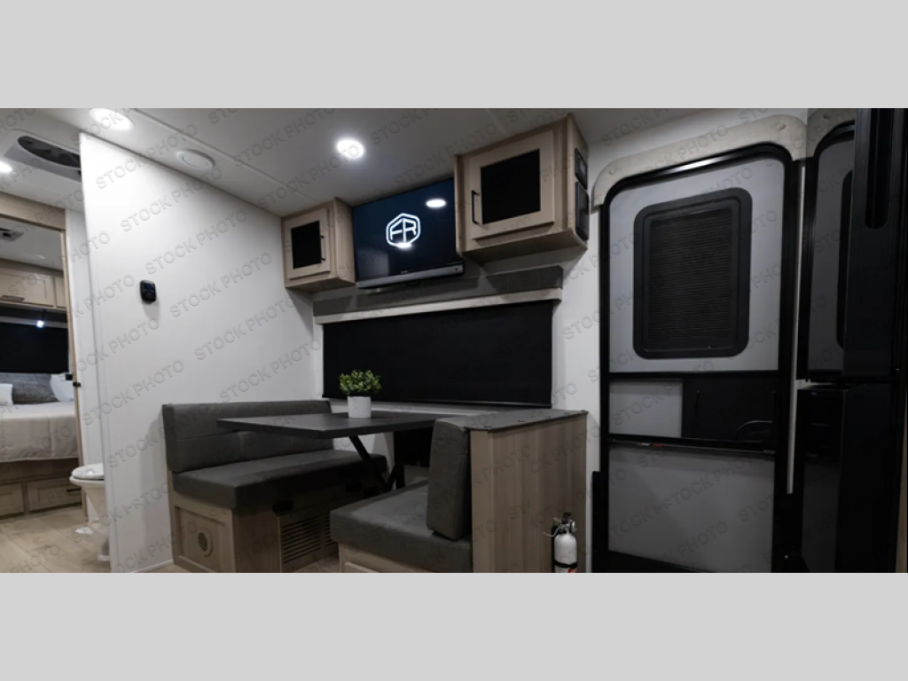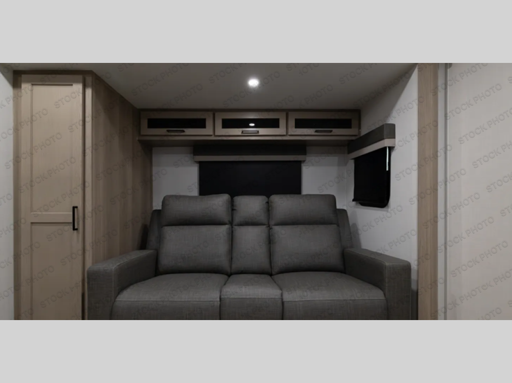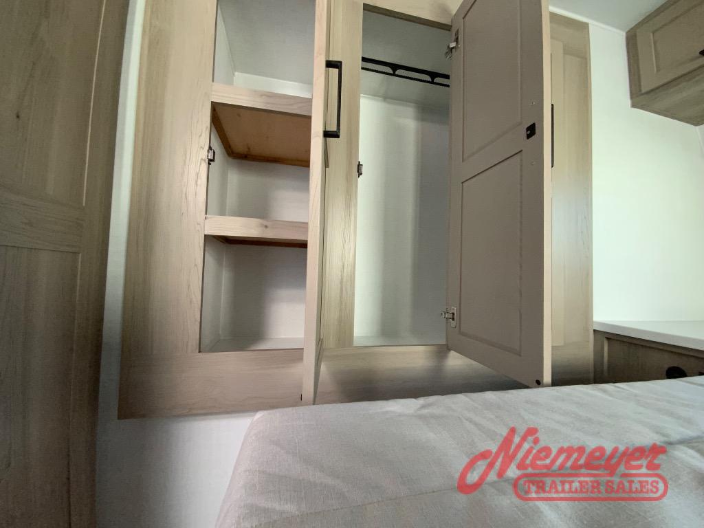 You and your spouse will have a great time camping in this travel trailer! You will have your own RV queen bed to sleep on in the front private bedroom, and an optional TV can be added if you enjoy the morning news in bed. Breakfast can be made on the three burner cooktop in the rear kitchen. The 67" theater seating with cupholders will provide a place to relax and dine together, and the spacious walk-through bath will allow you to clean up before you head out for the day. This model includes plenty of storage space, including a pantry for your snacks, a wardrobe slide out in the bedroom, plus a drop-frame pass-through storage for larger camp gear!