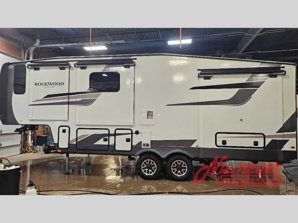 With any Rockwood Signature fifth wheel or travel trailer by Forest River RV, you will enjoy superior construction that includes a fully laminated walkable roof, 6-sided full-aluminum frame, and a painted fiberglass front cap with Clear Coat for added durability. Outside, you'll find a 200W solar panel for off-grid capabilities, slam baggage doors, and Key-Alike lock system for added convenience. Head inside to find soft close roller bearing drawers, roller shades, and residential style gas range. These travel trailer and fifth wheels also feature Goodyear Endurance tires with a tire pressure monitoring system plus Dexter Torflex torsion axles for smooth towing!