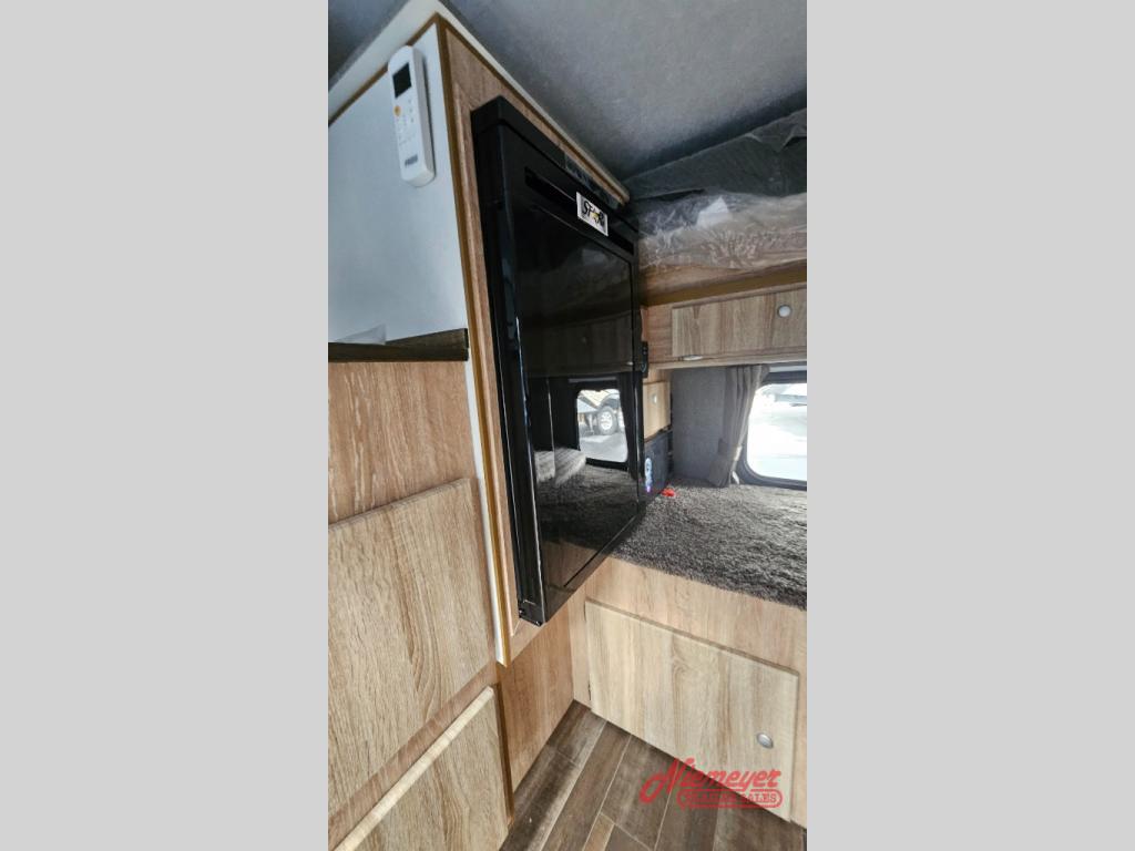 Come see why this truck camper is a fan favorite! It sits inside the bumper on all 6' 4" to 6' 10" bed trucks leaving the receiver area unimpeded so there is no need for hitch extensions which makes it ideal for towing. Stay well rested and full with a front queen bed to lay your head on at night, and a 3.5 cu. ft. 12V compressor refrigerator and a two burner slide-in glass top stove to cook meals. You even have a screen door to keep the bugs outside and the cool breeze inside!