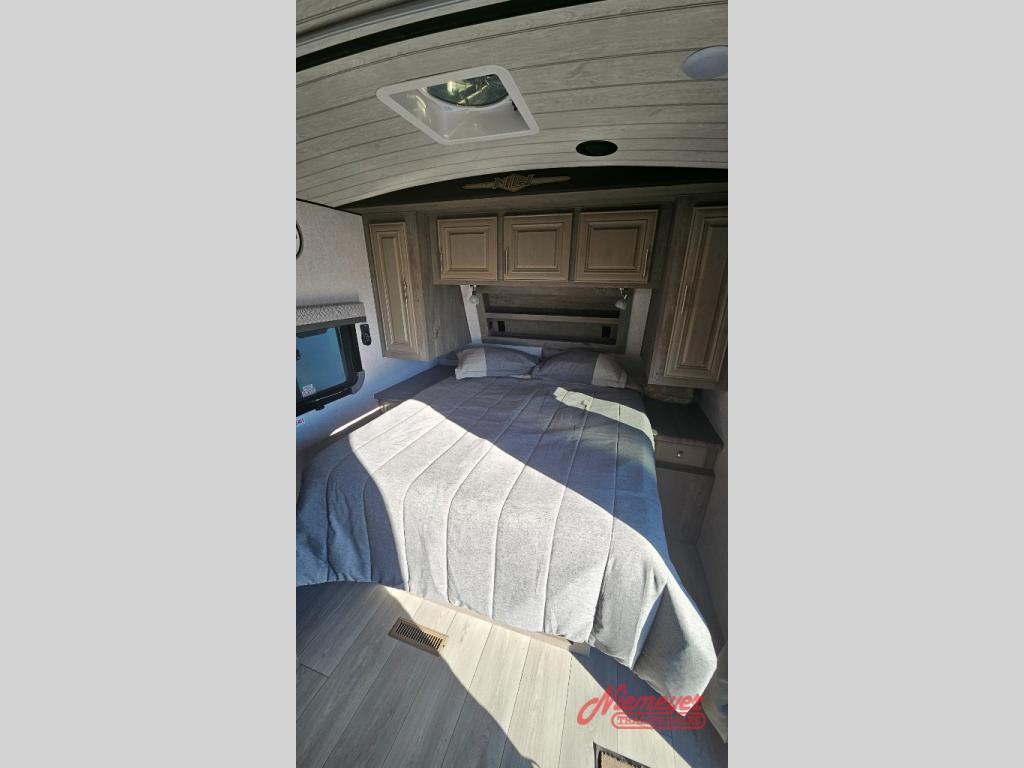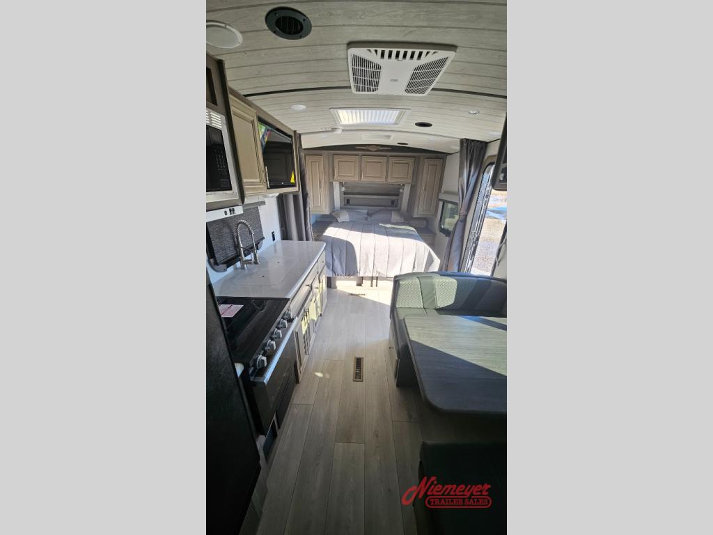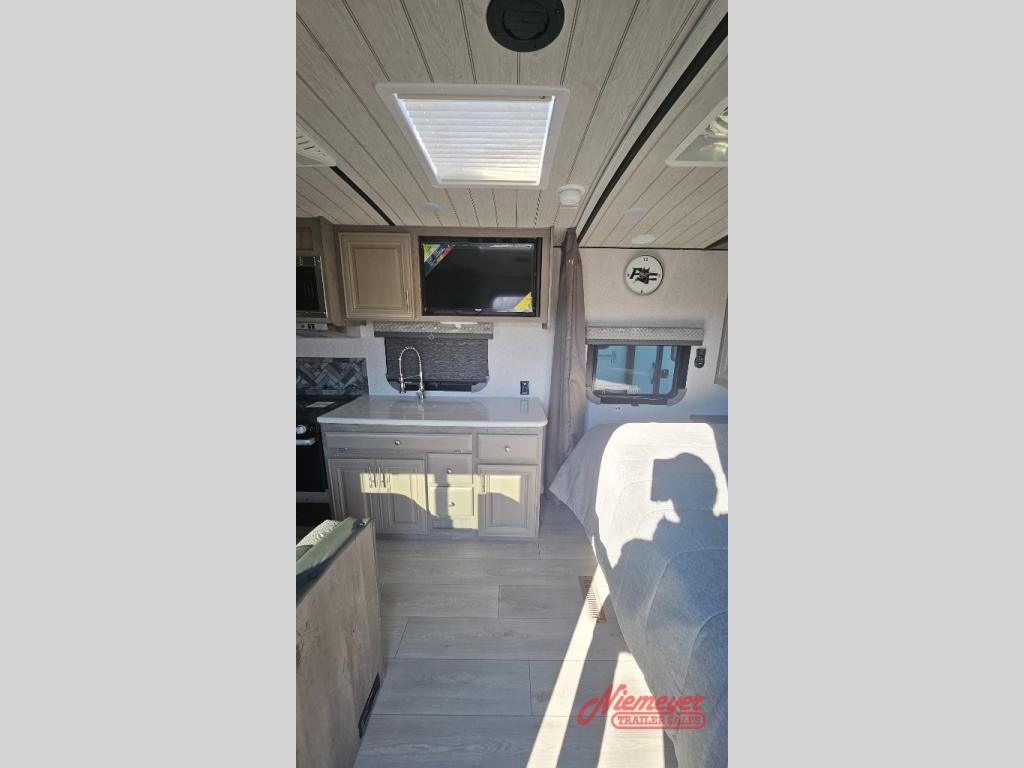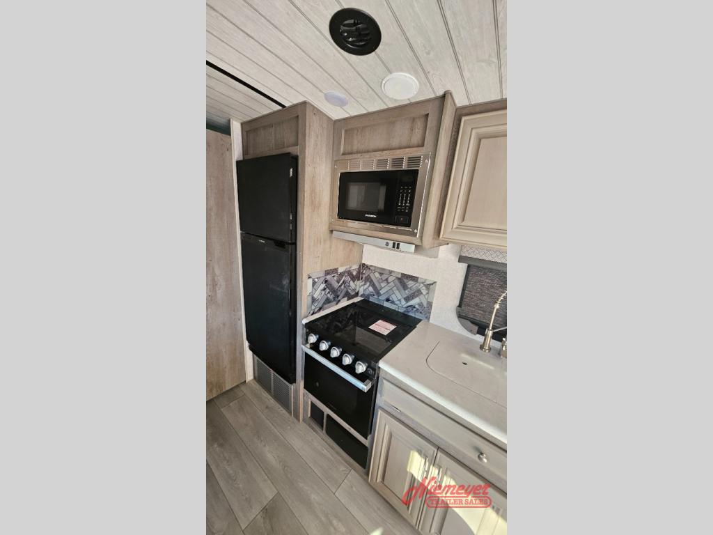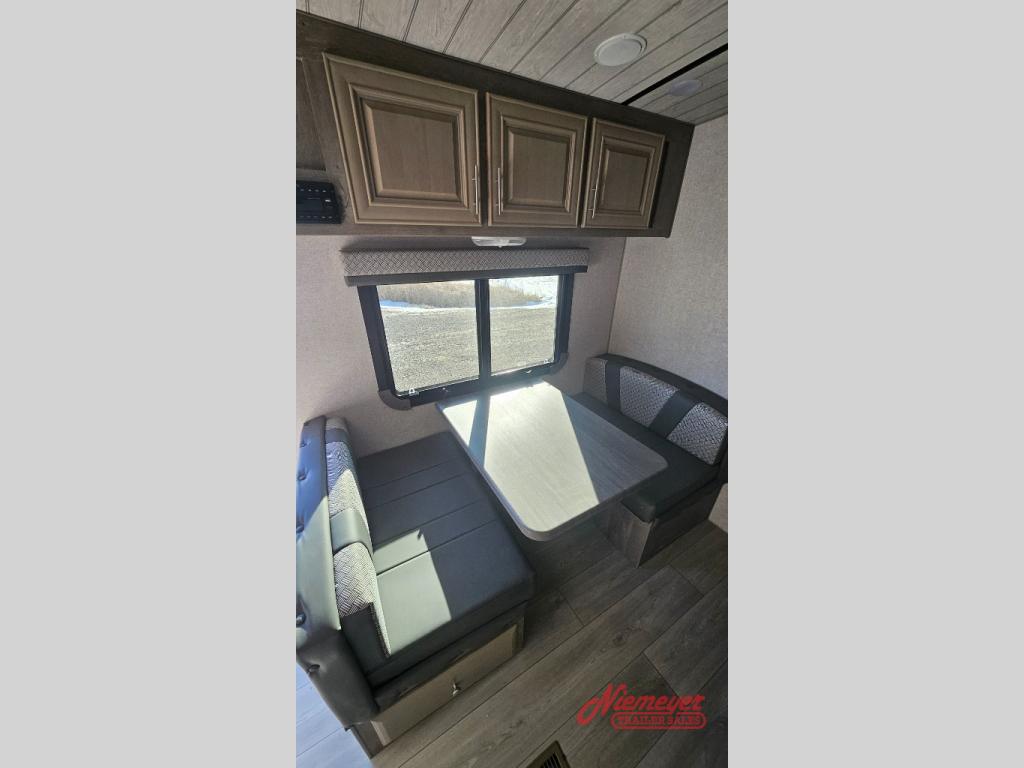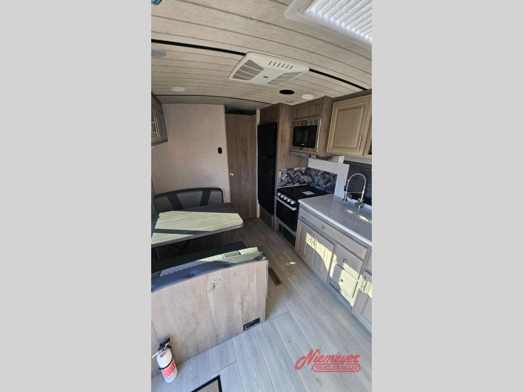 Experience the freedom of adventure with this charming travel trailer! The full rear bathroom provides a private and convenient space for freshening up. The kitchen features a fridge for keeping food and drinks fresh, a booth dinette for dining and additional sleeping space, a three-burner cooktop for culinary creativity, and overhead cabinets for ample storage of cookware and dishes. The cozy front bedroom features dual wardrobe for storing clothing and essentials, as well as an overhead cabinet for additional storage. The exterior awning provides shade and protection from the elements, adding to the overall comfort and livability of the trailer.