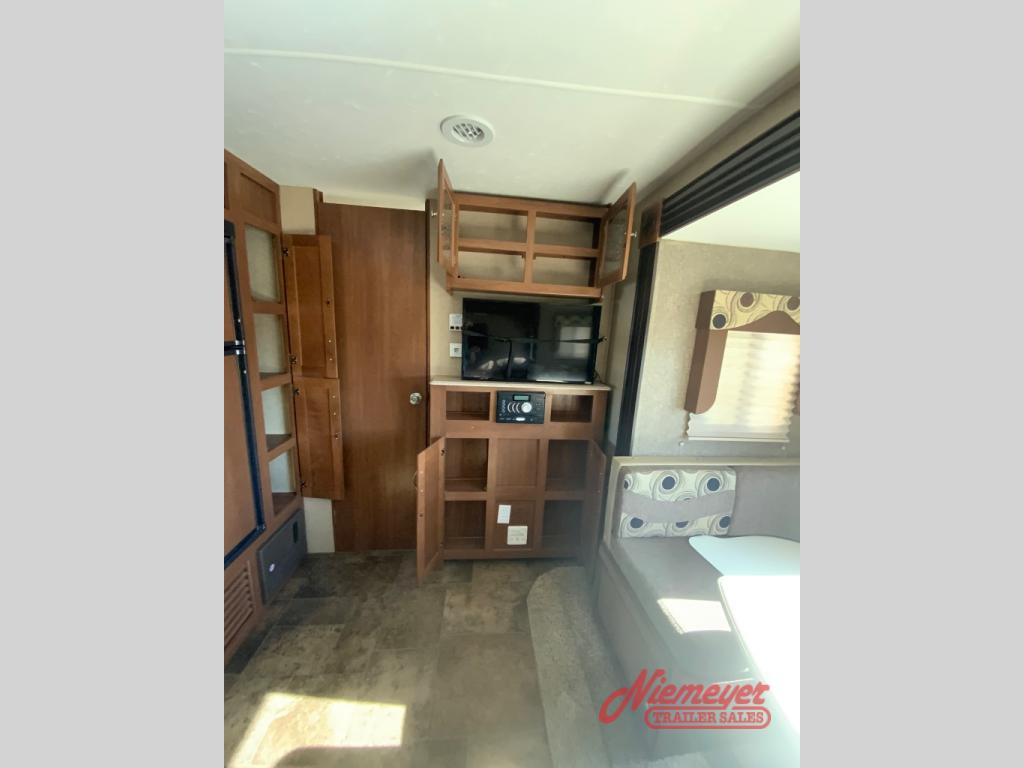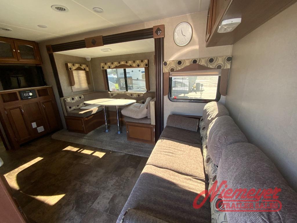 Step inside and notice a comfortable sofa straight ahead through the door. There is overhead cabinetry above for storage. On the opposite side of the room along the interior wall just off the dinette area you will find an entertainment center for your enjoyment.