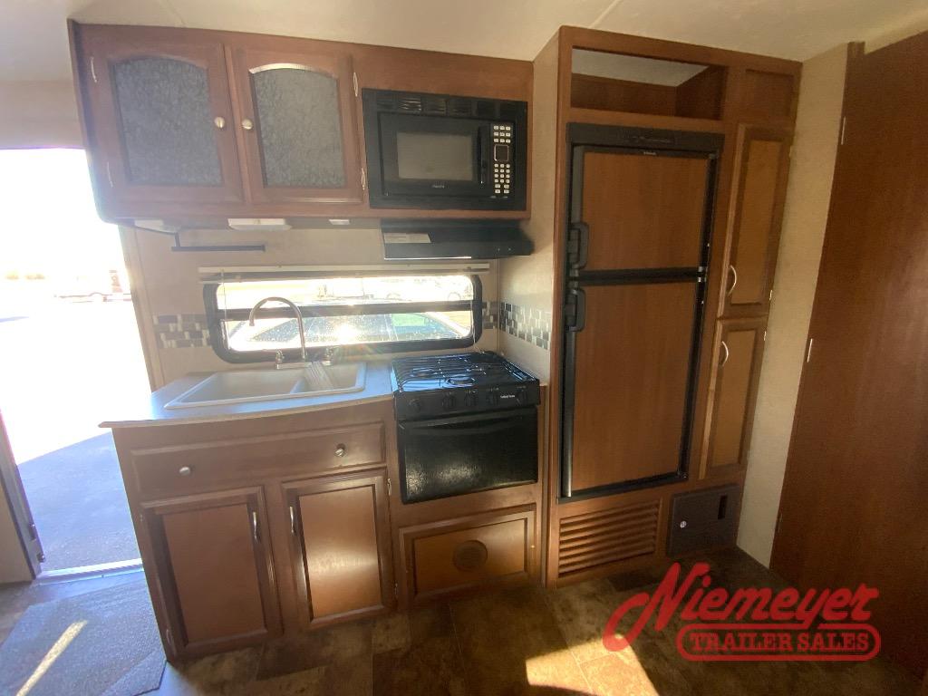 This Freedom Express Ultra Lite trailer 248RBS features a rear bath layout, a single slide for added interior space, and a convenient camp kitchen also!