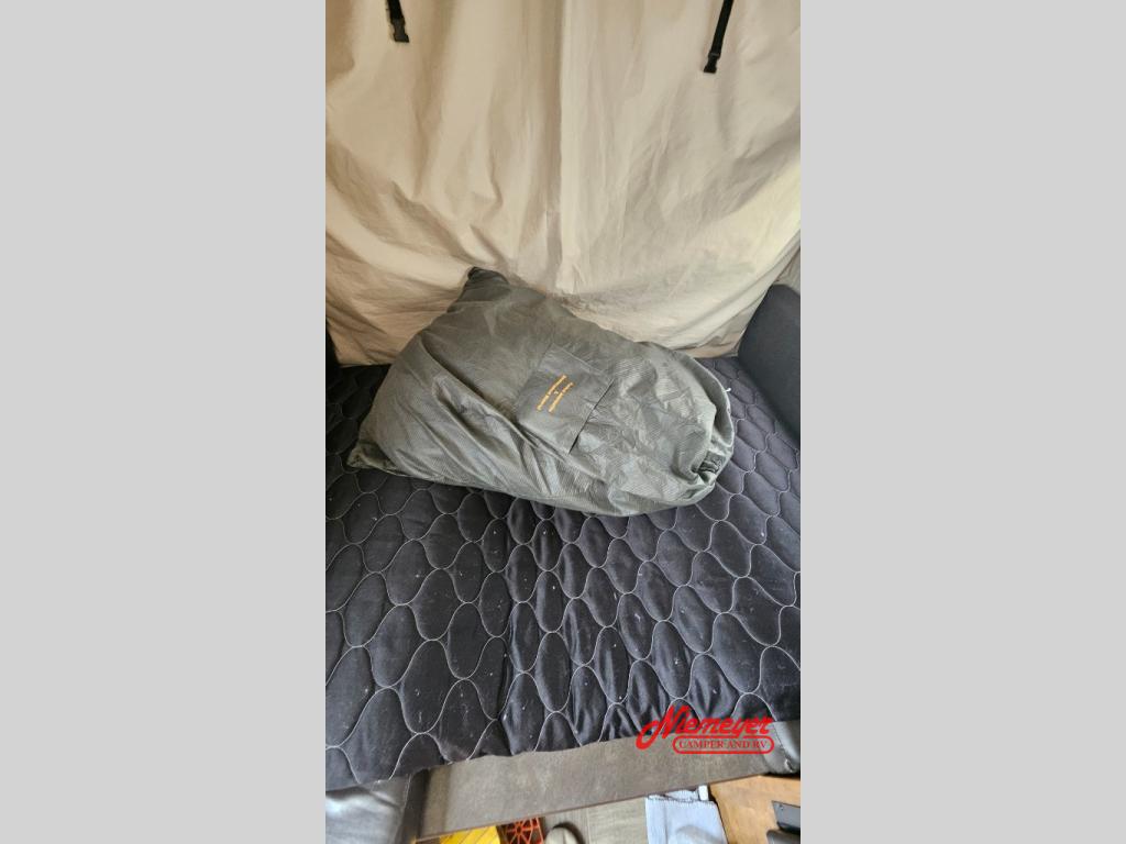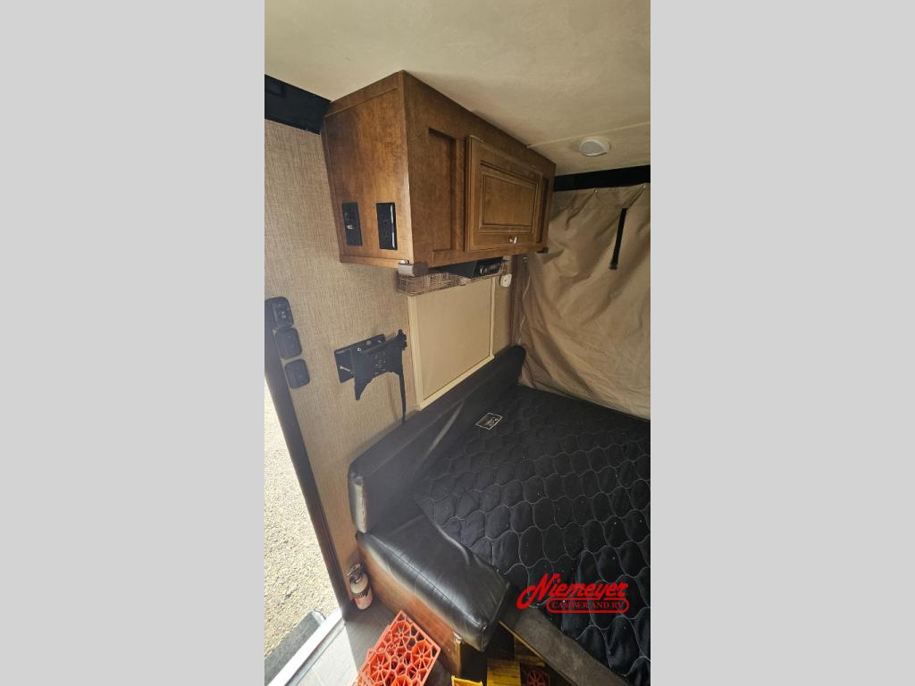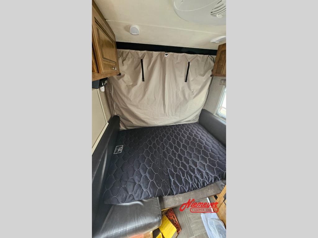 Inside you will enjoy a u-shaped dinette/bed which will be great for mealtime, or hanging out with friends. At night you can easily convert it to sleeping space. You also have a choice to add the optional tip out bunk in the rear.