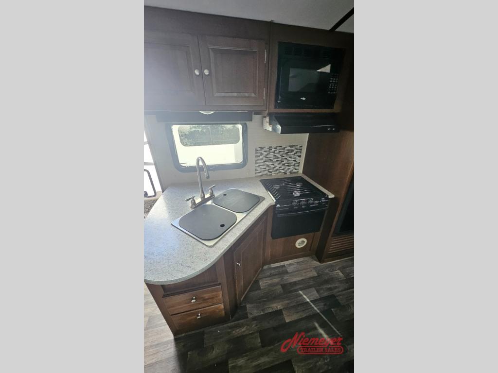 Enjoy camping in this Keystone Premier Ultra Lite travel trailer 22RBPR. This unit features a single slide, rear bath, and an outdoor kitchen.
