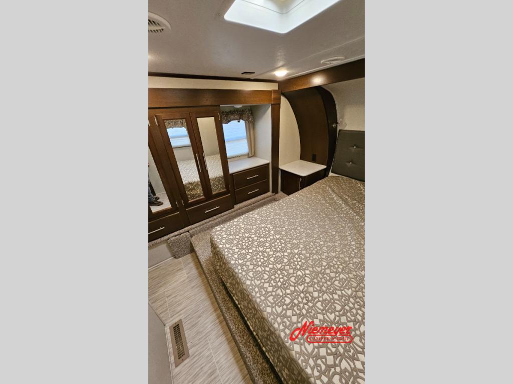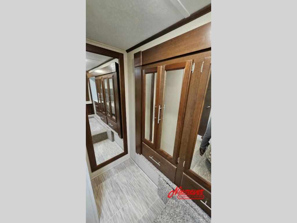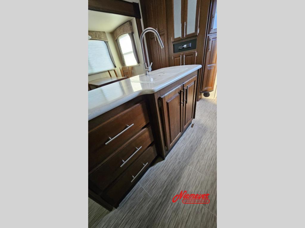 This unit is a part of Forest River's commitment to innovation. With its beautiful solid surface countertops, raised panel cabinet doors, and interior LED lighting, this model provides unmatched quality. All of the windows in each slide-out room have been designed to allow a refreshing breeze to cool down the interior with cross ventilation, and pleated night shades have also been added to all of the windows so that you have the option to lower them whenever you need a little extra privacy.