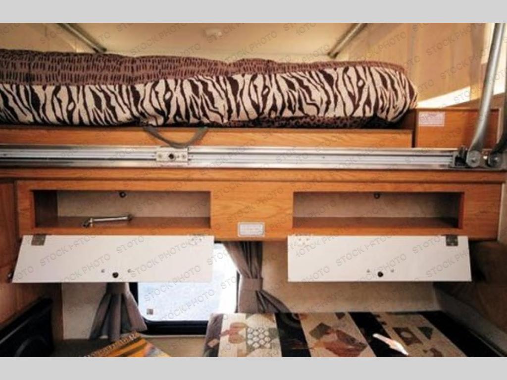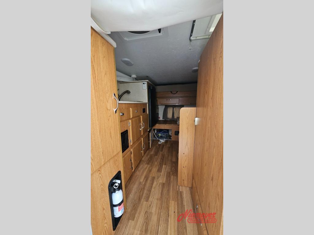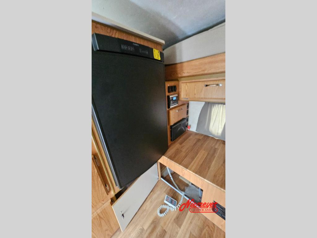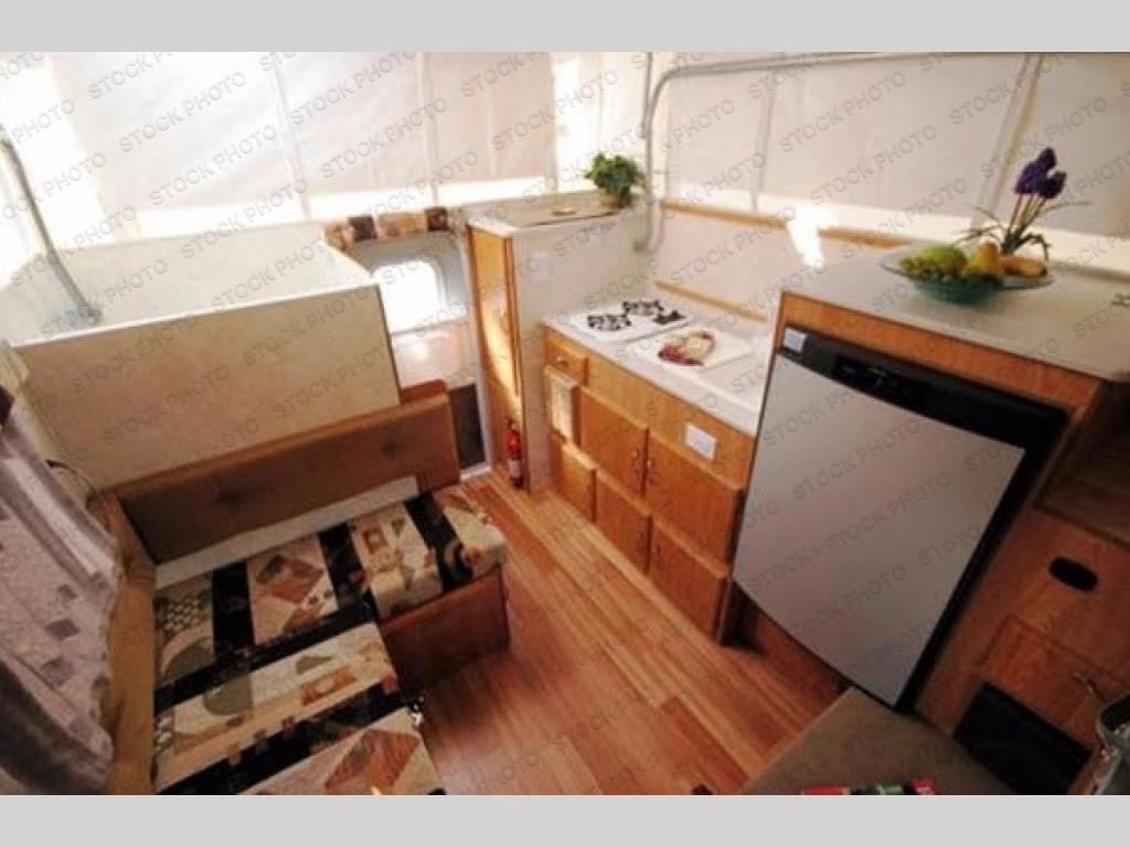 This Northstar Pop-Up 850SC truck camper will easily fit on short (6'4" to 6'10") or a long bed (8') truck. This model features a u-dinette where you can enjoy your meals. Stepping inside the camper, to the right there is a shower and cassette toilet. Just past the bath area you will find a u-dinette. Along the opposite side of the camper there is a wardrobe, two burner range, sink, and refrigerator.
