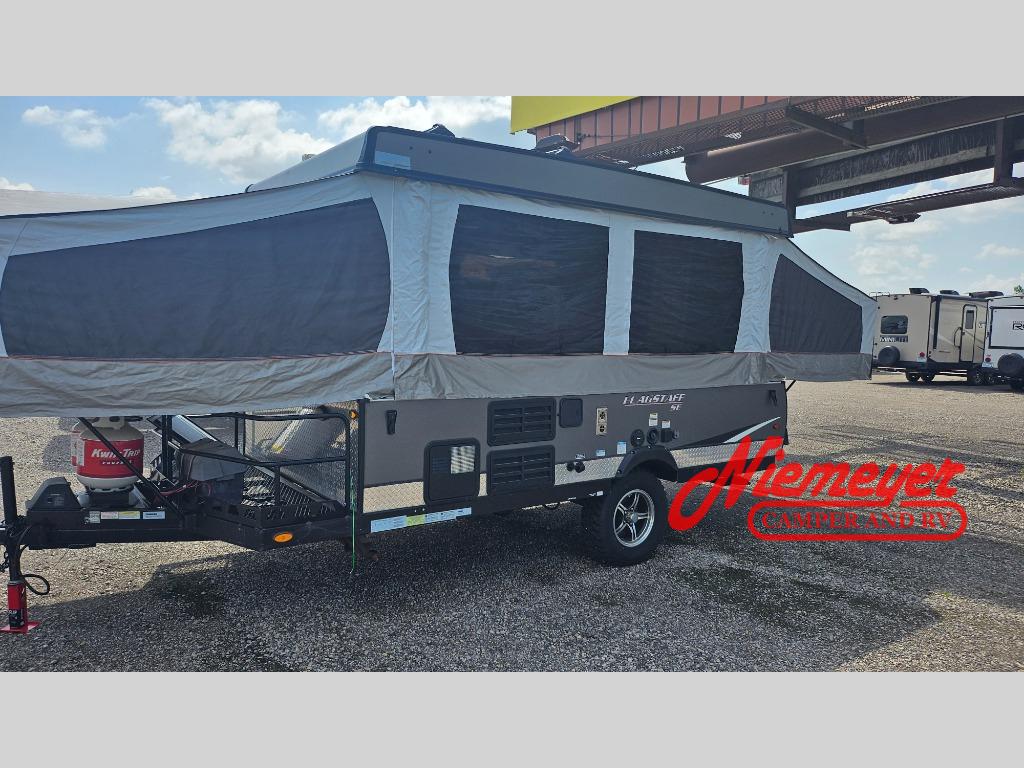 In each Flagstaff SE folding pop-up camper by Forest River, you will be delighted to find many features that will make camping life easier. Enjoy a heated mattress, a three-speed ventilation fan, and metal full-extension drawer guides in each unit. Stay connected to the outside world while you camp with a WiFi Ranger Sky 4 WiFi booster that comes standard in each unit. You'll love to sit outside in the evenings under the awning with LED lights, and with an outside speaker and a patio light, you may just stay out under the stars all night. These camping trailers have been constructed with an E-coated tubular steel frame, a chrome diamond-plated front and side skirt, and four E-Z crank-down stabilizer jacks with sand pads to make your camping trips safe and convenient.