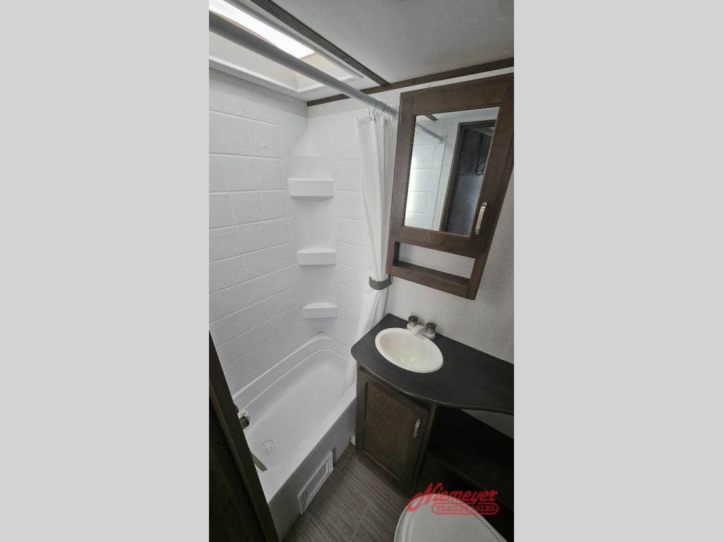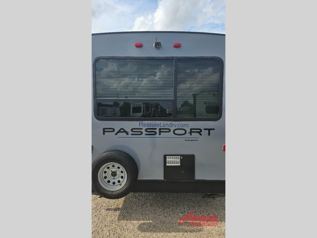 Have you been searching for a travel trailer that has a sofa and Murphy bed for yourself and a dining area when the weather isn't just right to eat outside? This Passport travel trailer allows you to enjoy the views out the rear window while sitting at the U-shaped dinette eating, reading a book, or playing a game with friends. You can watch the flat screen HDTV and make meals in the kitchen all while someone else gets cleaned up in the full bathroom. Once it's bedtime, the front Murphy bed will provide a comfortable night's rest after relaxing on the sofa. You will also appreciate the exterior pass-through storage for your larger camping items.