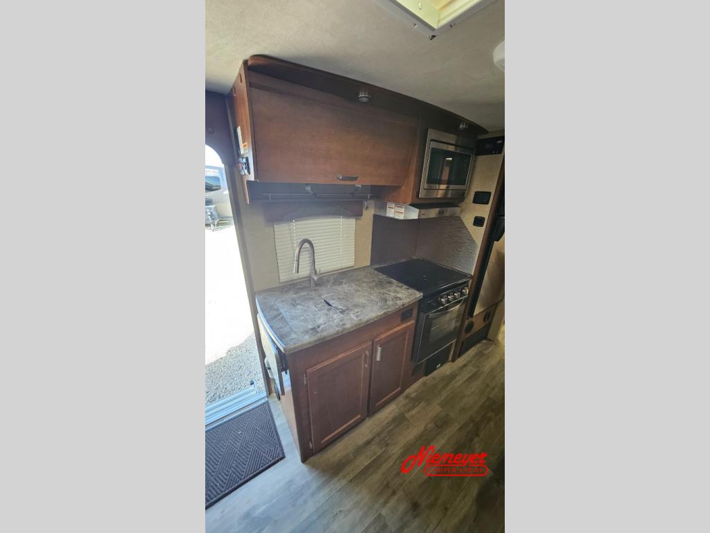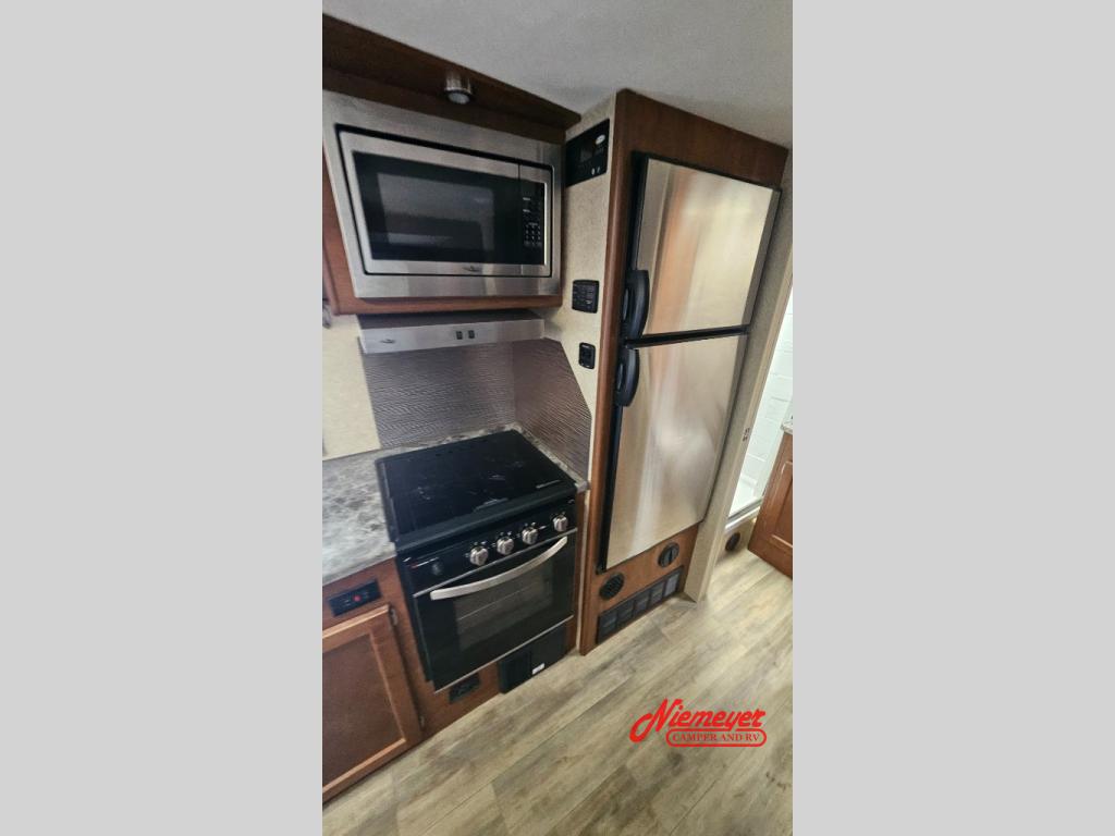 You will enjoy every minute spent in this spacious travel trailer. Once you arrive at your destination, slide out the U-shaped dinette as the chef of the family prepares lunch on the three burner range. The folding galley extension will provide more counter space, along with the sink cover. Within the full rear bath you'll find a shower skylight for more standing room and a wardrobe to hang your clothes for your convenience. The queen bed up front includes a privacy curtain in case you have guests over, and you can choose to add the optional 32" TV in the main living area that is in great view from the dinette and the bed!