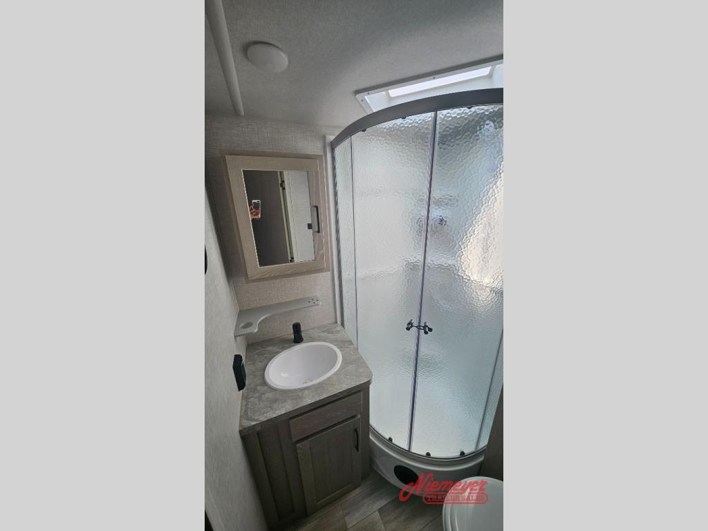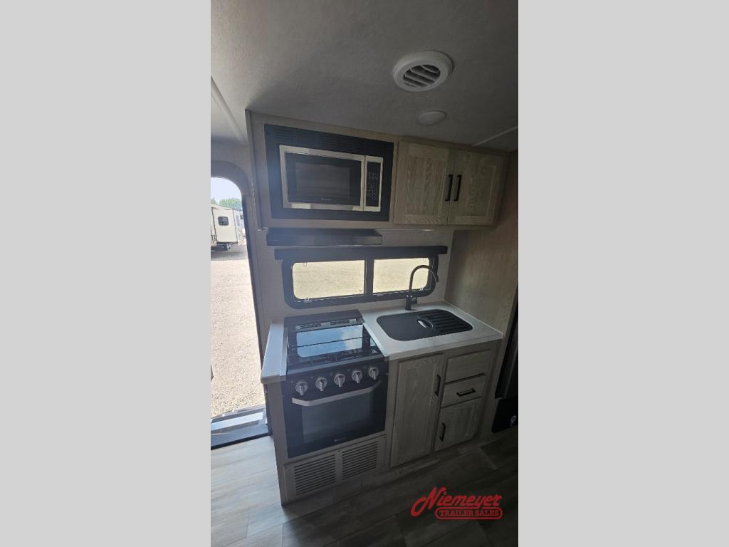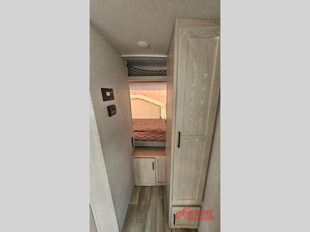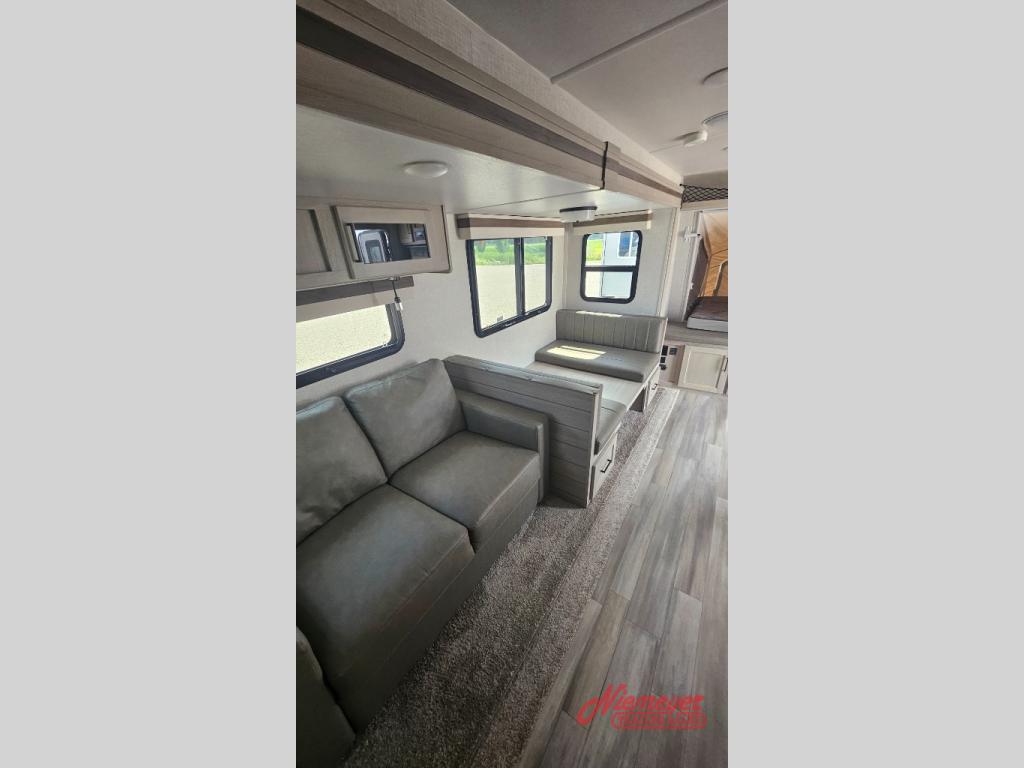 With any Rockwood Roo expandable travel trailer by Forest River you will enjoy smooth towing thanks to the torsion axle, Rubber-Ryde suspension, the easy lube axles and Nev-R-Adjust brakes, and the Goodyear Endurance tires. The key-Alike locks provide easy access in and out of your trailer, and each model includes a Teton all-in-one WiFi booster with LTE prep and an antenna for all your connection needs. Each model is constructed with a vacuum laminated one-piece roof and walls, an enclosed underbelly, and frameless windows for a more sleek look. You will enjoy many interior comforts, including hardwood cabinet doors and drawer fronts, pleated night shades, a bunk/fan light combo with each bed, and much more!