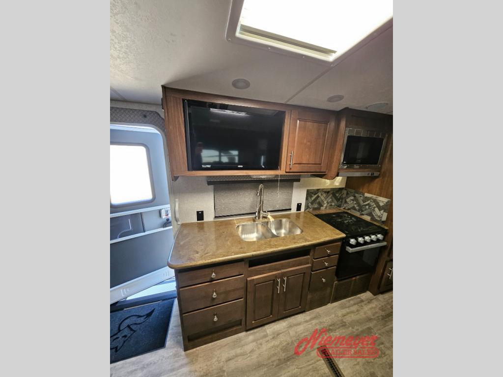 Get some sun and soak up nature with this Northwood Arctic Fox North Fork travel trailer! You'll have fun spending time with the family as you play a game together on the booth dinette or watch a movie on the 19" LED TV. The kitchen skylight with shade will bring in some natural light while you prepare dinner on the three-burner range, and if you close the privacy curtain, you can relax separately up front on the RV queen bed.